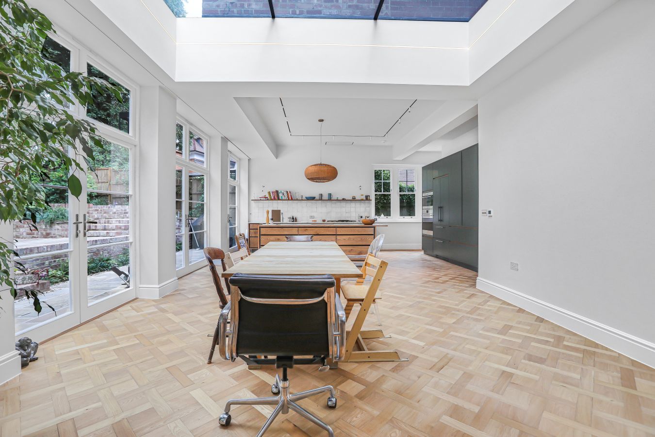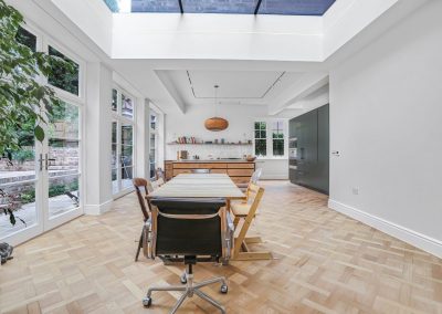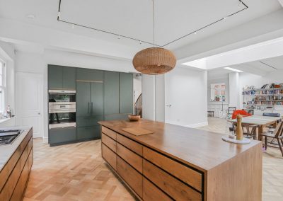 This project involved the creation of a new basement, a rear extension, and a complete reconfiguration and full refurbishment of the property. The design features a stunning bespoke staircase and a custom skylight roof, bringing in natural light and enhancing the modern aesthetic of the home. The project showcases DARQS’ commitment to high-quality craftsmanship and innovative design.