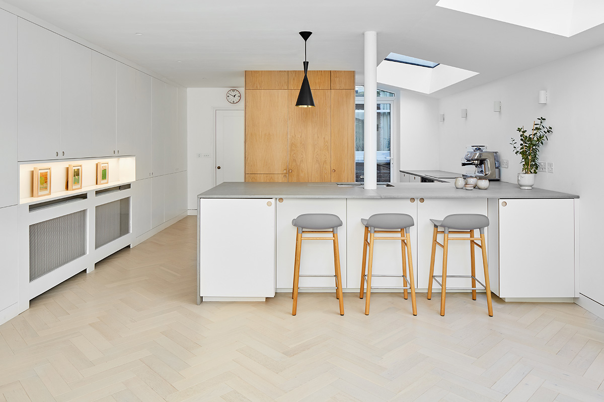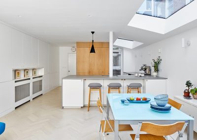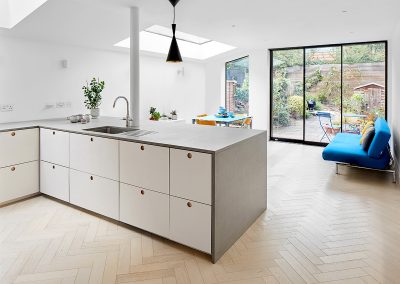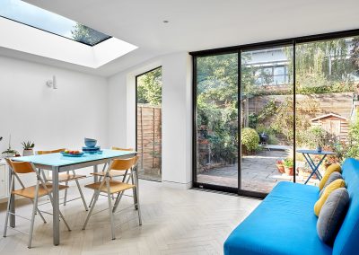 Located in London, the Weston Park project features a modern side and rear extension, transforming the property into a spacious and contemporary living space. The full refurbishment includes interior upgrades throughout, while the addition of a stunning skylight roof floods the home with natural light. The project also boasts a beautifully designed landscaping feature, enhancing both the aesthetic and functionality of the outdoor space.